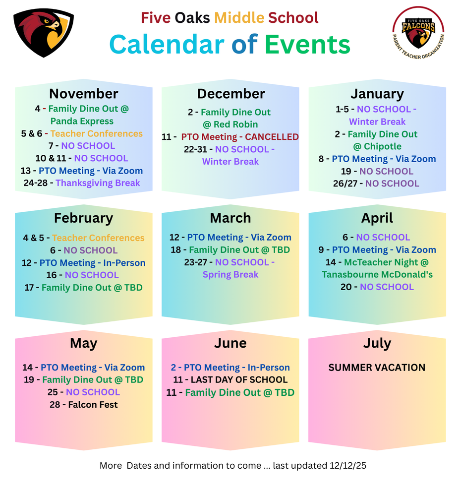 The Five Oaks Parent Teacher Organization is a group of dedicated families, teachers, and staff focused on enriching the educational experience of our students.